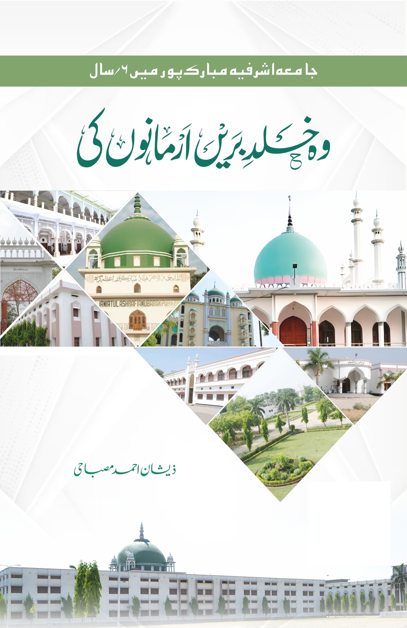 ’’الجامعہ الاشرفیہ‘‘ کی عمارات، سبز گنبد اور باغات کا ذکر مصنف کے ذوقِ جمال کا اعلی نمونہ ہے، جو اُن کے حسن تخیلات وقلمی پُرکاری کی مثال پیش کرتا ہے۔ یہ حصہ بتاتا ہے کہ اسلام میں جمالیات (Aesthetics) کی کیا اہمیت وافادیت ہے۔ ایک طالب علم جب ایسے پُرشکوہ ماحول میں رہتا ہے، تو اُس کی شخصیت میں ایسی خود اعتمادی پیدا ہوتی ہے جو اُسے دنیا کے سامنے فخرسےسر اُٹھا کر گفتگو کرنے کا حوصلہ دیتی ہے۔